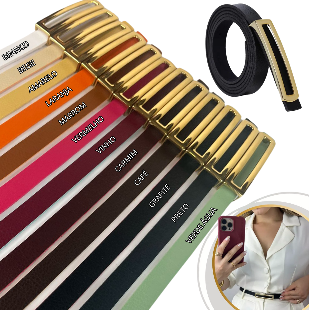 Renove seu guarda-roupa com esses elegantes cintos, perfeitos para quem busca sofisticação e estilo em qualquer ocasião. Com um design elegante e moderno, cada cinto possui fivela dourada alongada que adiciona um toque de requinte ao seu visual.
